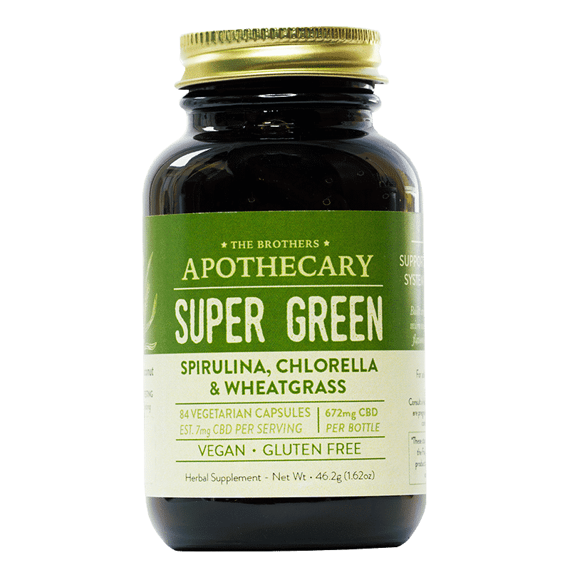 Spirulina, chlorella, and wheatgrass are powerful, nutrient-packed superfoods, including high amounts of vitamins, minerals, and antioxidants. In fact, spirulina is considered one of the world's most nutritious superfoods! The Apothecary's Super Greens capsules are full-spectrum, non-toxic, and packed with nutrients and absorbable compounds. They're designed to promote a healthy body, boost energy levels, and even relieve occasional aches and pains.