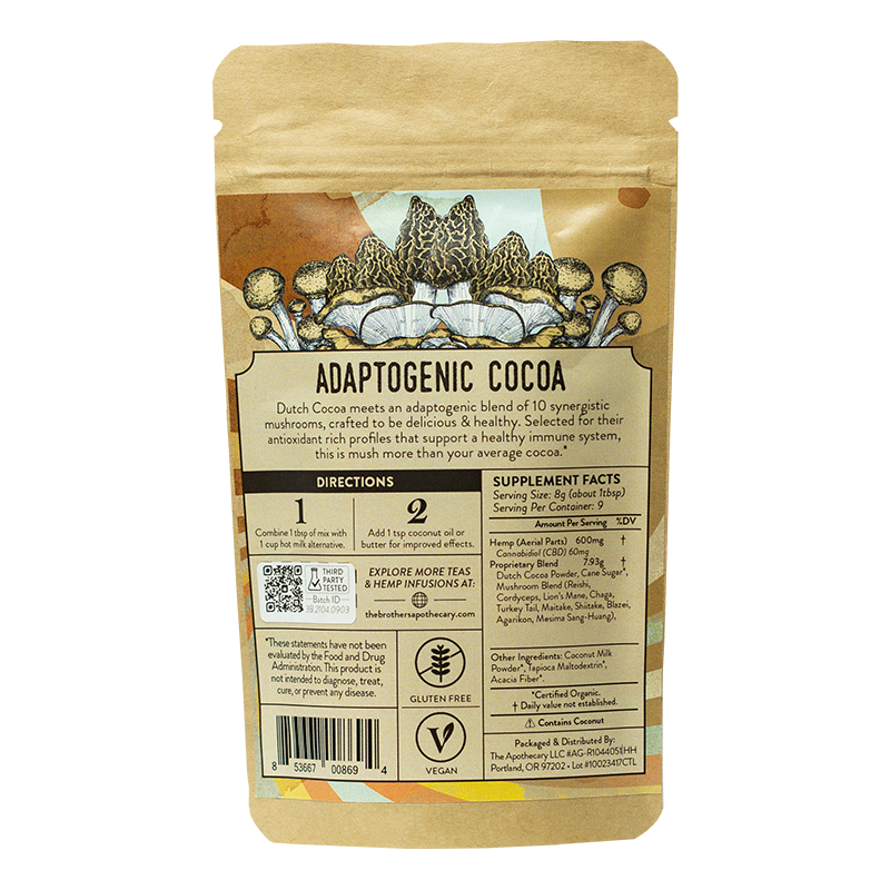 Dutch cacao combines with an adaptogenic blend of 10 synergistic mushrooms in this CBD-infused hot chocolate. Delicious and healthy. Low in sugar and blended with organic, Fair Trade Madagascar vanilla.