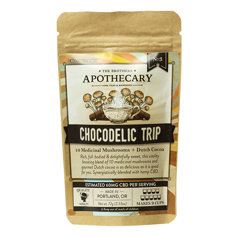 Chocodelic Trip is a unique CBD hot chocolate. With a host of healthy ingredients, including an adaptogenic blend of 10 synergistic mushrooms, this hot chocolate is crafted to be both delicious and wholesome. Our mushrooms are carefully selected for their support of a healthy immune system, making them far more unique than regular cocoa. The Dutch cocoa used also contains high amounts of B vitamins, riboflavin, and vitamin K. This cocoa also contains minerals such as magnesium, potassium, and zinc.