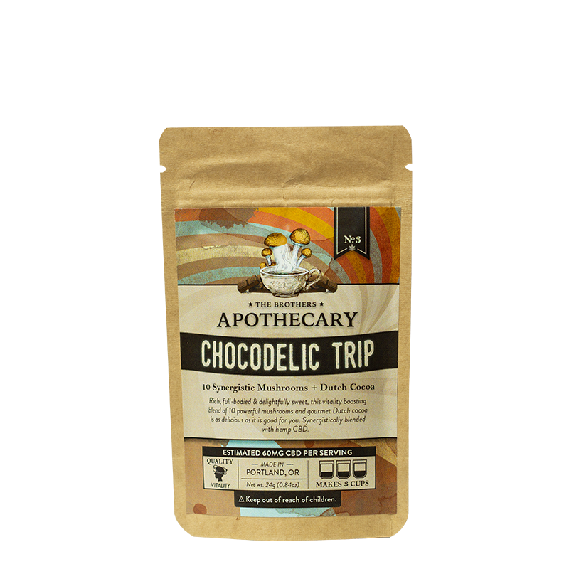 Where do the mushrooms come from and how are they grown? The mushrooms included in Chocodelic Trip are made from finely ground mycelium and fruiting bodies, locally grown in Portland, Oregon, on a base of brown rice. Each batch undergoes rigorous purity and safety checks, and these are some of the highest quality, bioavailable medicinal mushroom products available. The diverse composition of active ingredients—including mushrooms like Chaga, Reishi, and Cordyceps—is an excellent way to maintain a healthy body, and this rich cacao is one of the most delicious ways to enjoy them!