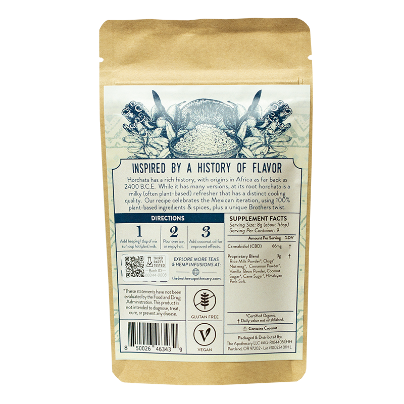 Horchata has a rich history, with origins in Africa dating back to 2400 BC. While it has many versions, at its core, horchata is a refreshing, milky (often plant-based) beverage with a cooling characteristic. Our recipe celebrates the Mexican version, featuring 100% plant-based ingredients and spices, plus a unique Brothers twist.
