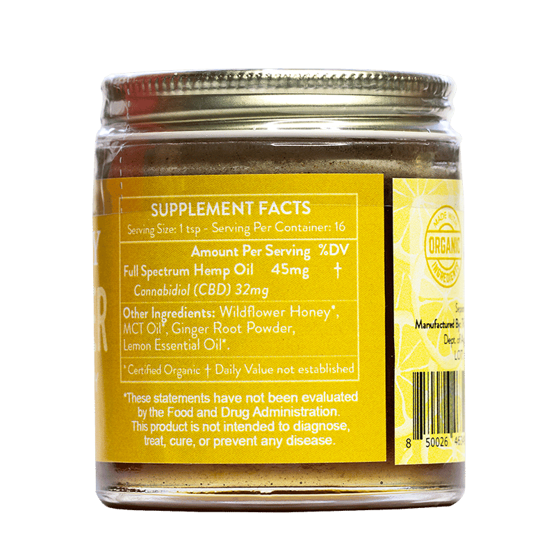 Use it to sweeten any beverage or as a delicious honey treat. This honey has a lemon and ginger flavor, so it will add a unique taste to any product. We love consuming it on its own or adding it to a cup of our CBD tea (especially our Golden Dream!).