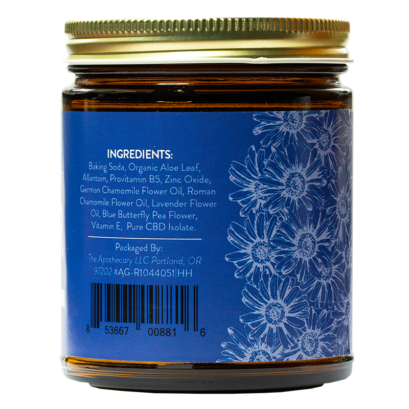 El aroma relajante de la lavanda natural se combina con la manzanilla romana y alemana, junto con la beneficiosa hoja de aloe vera, óxido de zinc, provitamina B5 y bicarbonato de sodio. Este baño de CBD puro está formulado para todo tipo de piel y se disuelve al instante, sin dejar residuos ni suciedad. Ligeramente coloreado con polvo de guisante de mariposa; el tono azul tampoco mancha la bañera ni la piel, y se enjuaga con la bañera, ¡sin necesidad de limpieza adicional!