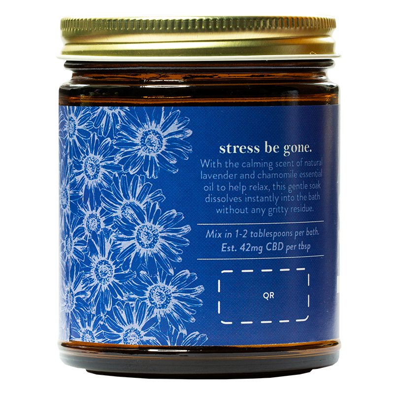 Baño de inmersión con CBD, infusionado con manzanilla, lavanda y vitamina B5.