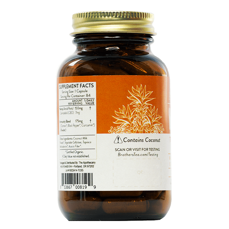 La cúrcuma contiene una gran cantidad de compuestos bioactivos, incluyendo el componente principal, la curcumina. Infusionadas con cáñamo y aceite de coco, y envasadas en cápsulas aptas para vegetarianos, nuestras cápsulas de apoyo inmunitario se elaboran con pasión, pensando en el cuerpo.
