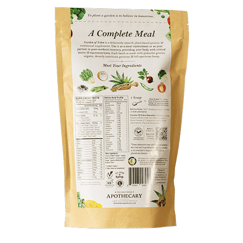 Esta mezcla de cáñamo y guisante también proporciona un perfil de proteína completo. El guisante está muy cerca de toda una fuente de alimento y tiene un alto contenido de lisina, un aminoácido que muchos veganos carecen de su dieta. Del mismo modo, el cáñamo tiene un conjunto extremadamente completo de aminoácidos esenciales, especialmente en comparación con otras fuentes de proteínas veganas. Juntos, estos se mezclan para proporcionar un impresionante conjunto de aminoácidos que son críticos para su cuerpo. Además, agregando superalimentos, verdes y nuestra mezcla de CBD de cáñamo patentada, creemos que Garden of Eden es el polvo de proteína CBD más completo y nutritivo disponible.