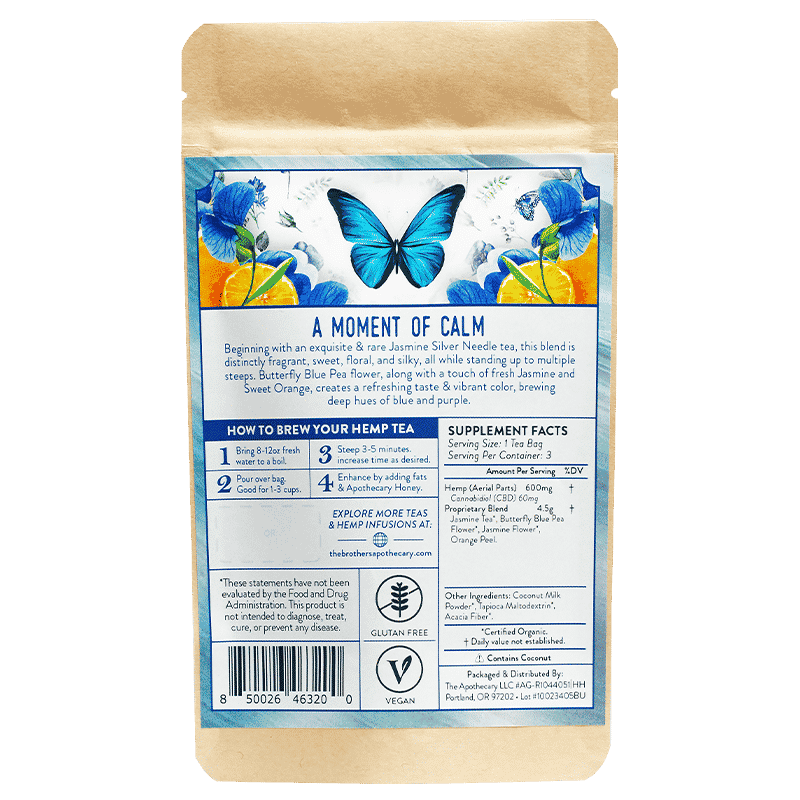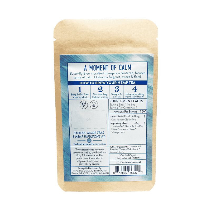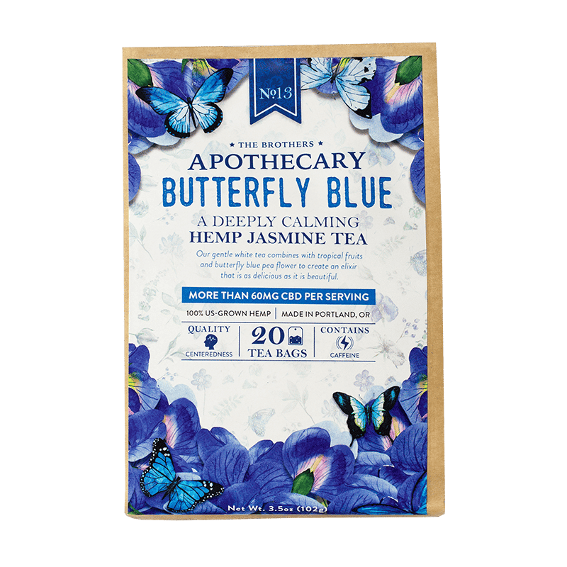 Al ver una gran lucha interna, un tío sabio le preguntó a su sobrino: "¿Por qué no disfrutas de una taza de té de jazmín calmante?". Butterfly Blue está formulado para calmar la mente, brindar claridad y centrar el espíritu. Un nuevo favorito en The Brothers, la receta comienza con un increíble y excepcional té blanco Silver Needle orgánico. Suave, sutil y conmovedor, esta infusión te ayudará a encontrar una paz interior que quizás nunca hubieras imaginado.