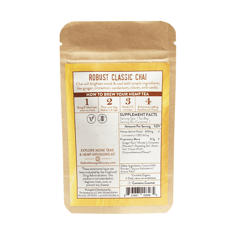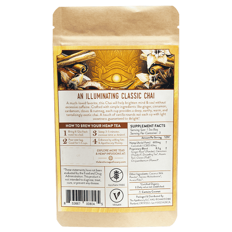 Elaborado con ingredientes sencillos como el té Darjeeling y especias como jengibre, canela, cardamomo, clavo y nuez moscada, cada taza ofrece una experiencia con cuerpo, picante y tentadora. Más picante que dulce, con un sabor tostado único, uno de los más populares en The Brothers Apothecary.