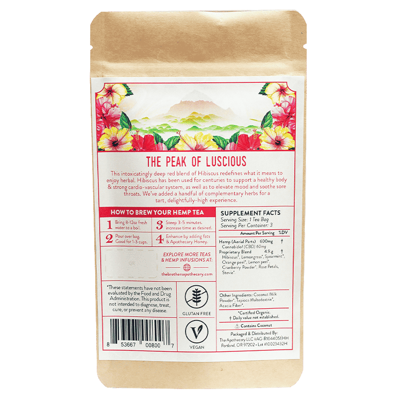 Esta embriagadora mezcla de té de hibisco CBD de color rojo intenso redefine el significado de disfrutar de las hierbas. El hibisco se ha utilizado durante siglos para promover la salud del cuerpo y la mente. Hemos añadido un puñado de hierbas complementarias para una experiencia exótica, semidulce y reconfortante. El Hibisco es un té fantástico para tomar caliente, pero también delicioso con hielo.